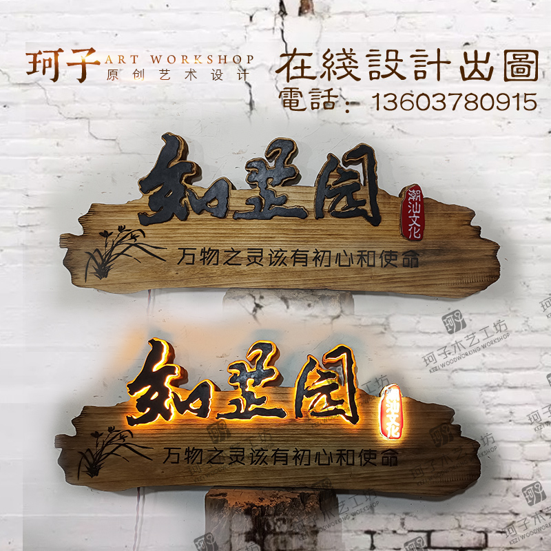 实木招牌定做仿古木雕实木新中式门头设计内嵌发光字浮雕牌匾定制