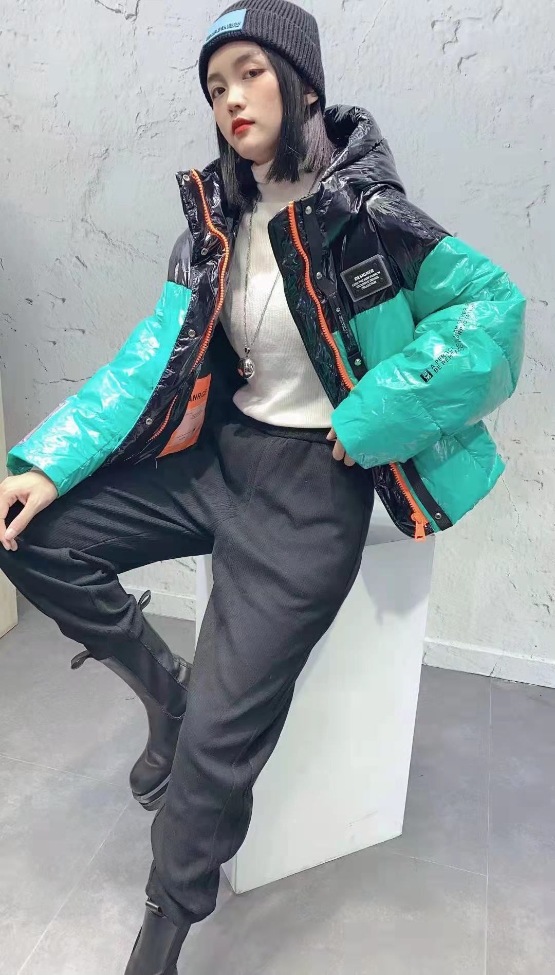 真品欧洲站2021---新款设计感小众高端羽绒服两个色拼接女热门设计联盟服务商