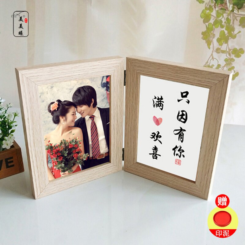 创意生日七夕情人节礼物手印摆台相框婚纱结婚纪念像框满心欢喜热门设计联盟服务商