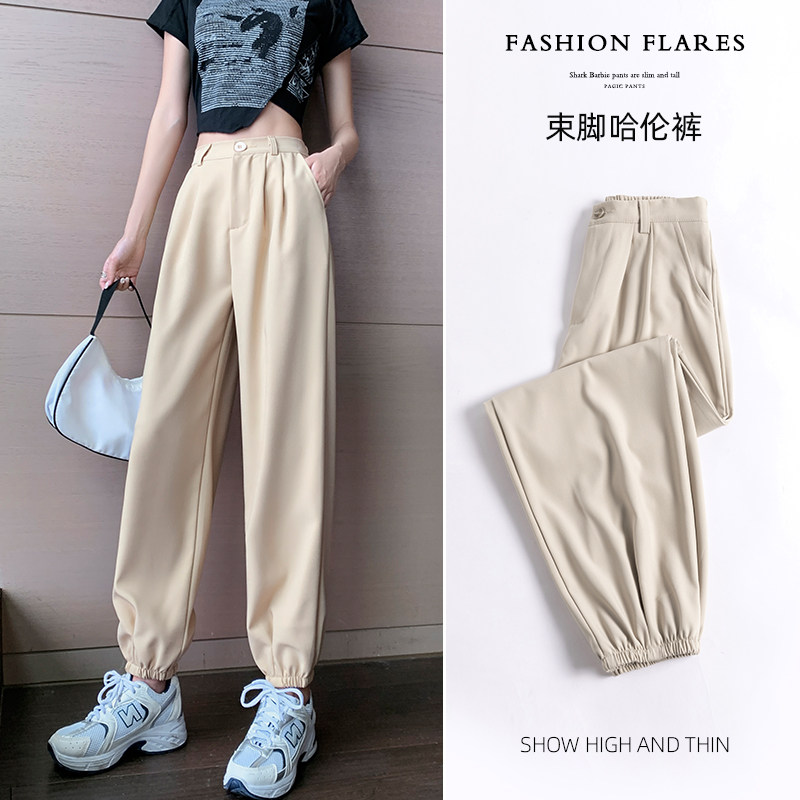 九分灯笼裤女2021新夏季薄款宽松束脚小个子大码杏色休闲工装裤子热门设计联盟服务商