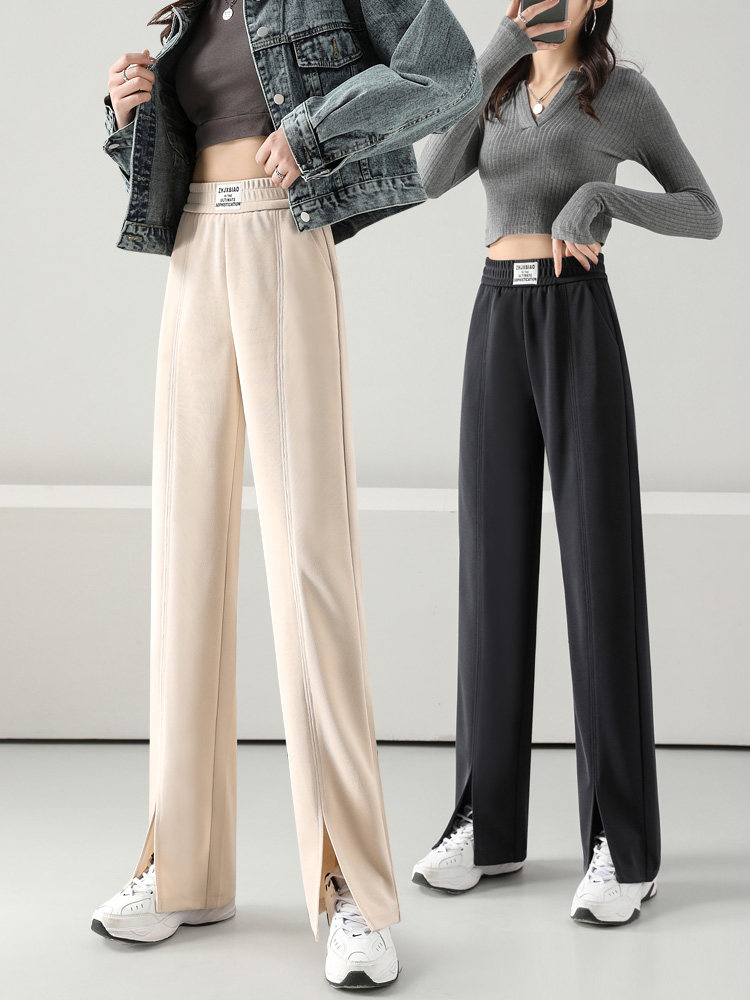 开叉阔腿裤女松紧高腰2021早春新款款宽松直筒垂感拖地西装裤子热门设计联盟服务商