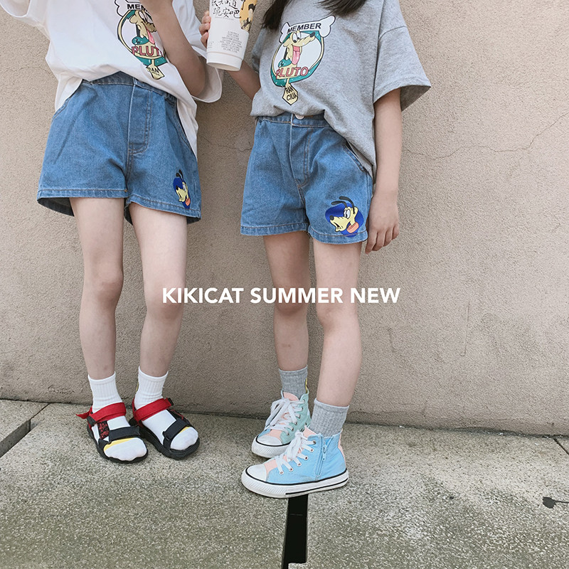 kikicat童装春夏款男女童韩版百搭柔软牛仔卡通印花短裤洋气热裤热门设计联盟服务商