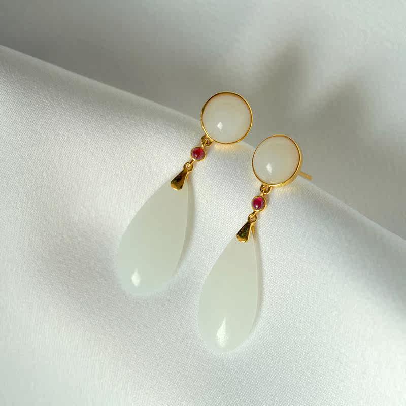 水滴耳环耳环金镶玉名媛天然耳环和田玉款籽料古法复古纯银设计风热门设计联盟服务商